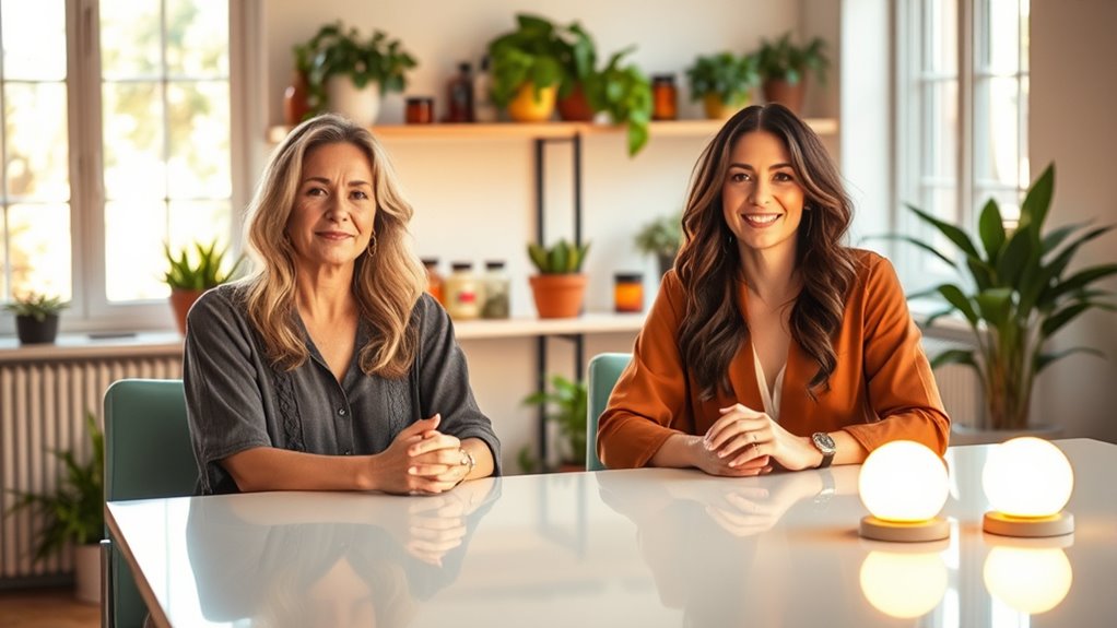 Beyond diet integrations, celebrity nutritionists are increasingly exploring unconventional methods like light therapy to boost skin health. Light therapy involves exposing your skin to specific wavelengths of light that stimulate cellular activity, collagen production, and circulation. When you incorporate light therapy into your skincare routines, you’re not just addressing surface issues—you’re targeting the deeper layers of your skin for long-term benefits. Many nutritionists recommend this as a complement to dietary improvements, emphasizing that true skin health comes from a holistic approach. Regular sessions with light therapy can reduce inflammation, fine lines, and even hyperpigmentation, helping you maintain a youthful appearance without invasive procedures. They often advise their clients to combine this with antioxidant-rich diets to maximize results, creating a synergy that enhances skin resilience from the inside out.