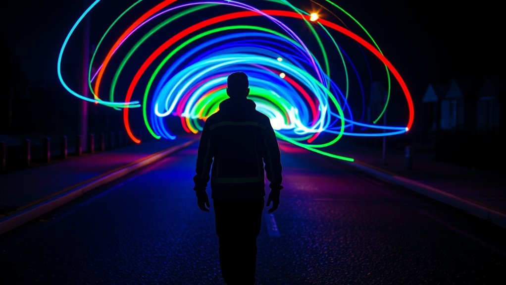 You might wonder if LED streaks emit harmful electromagnetic radiation. Research shows that LEDs produce very low levels of non-ionizing radiation, which is considered safe for everyday exposure. Unlike X-rays or UV rays, LEDs don’t emit harmful radiation that can damage your cells. So, you can enjoy LED streaks without worrying about electromagnetic health risks, as long as you use them as intended and follow safety guidelines.