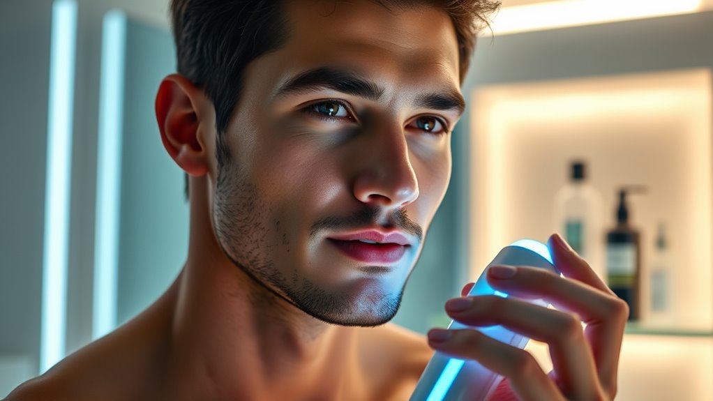 Influencers are really showing men that LED light therapy is a simple, science-backed way to improve skin. They share honest results and demonstrate how easy it is to incorporate into daily routines, making it more accessible and affordable. With their reviews and tutorials, they’re breaking down misconceptions and encouraging confidence in at-home treatments. If you want to discover how LED therapy could upgrade your grooming game, keep going to find out what makes it so effective.