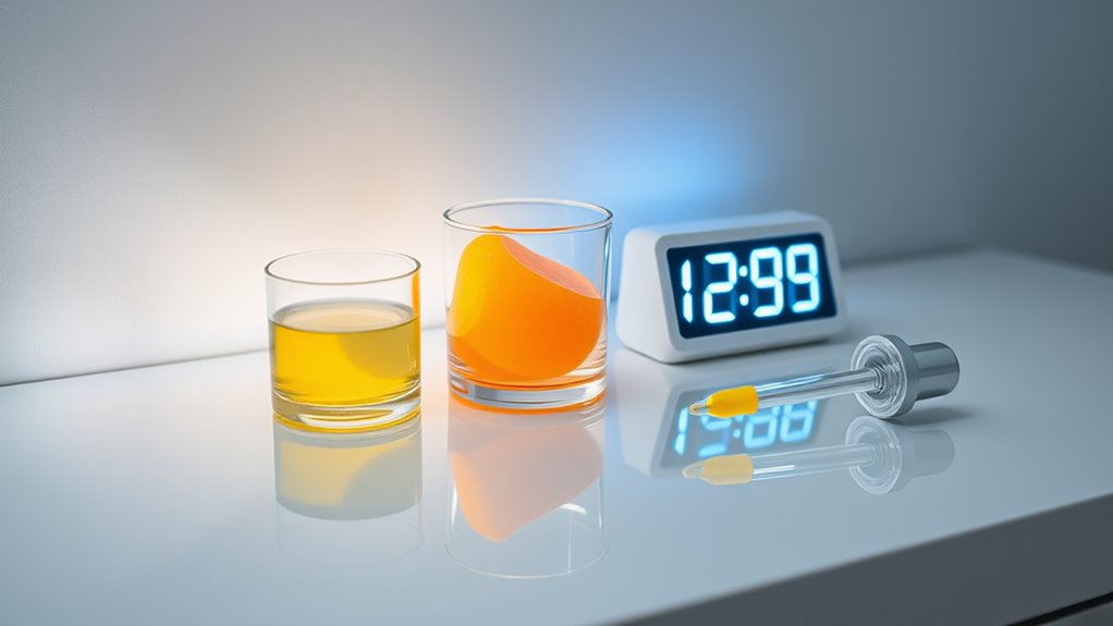 To get the best results from LED therapy while using acids like AHA and BHA, it’s important to wait at least 24 to 48 hours after applying these exfoliants before your LED session. This gives your skin time to recover, reduce sensitivity, and guarantee ideal light penetration. Skipping this waiting period can lessen LED effectiveness and cause irritation. Keep exploring to discover how proper timing can boost your skincare routine even more.