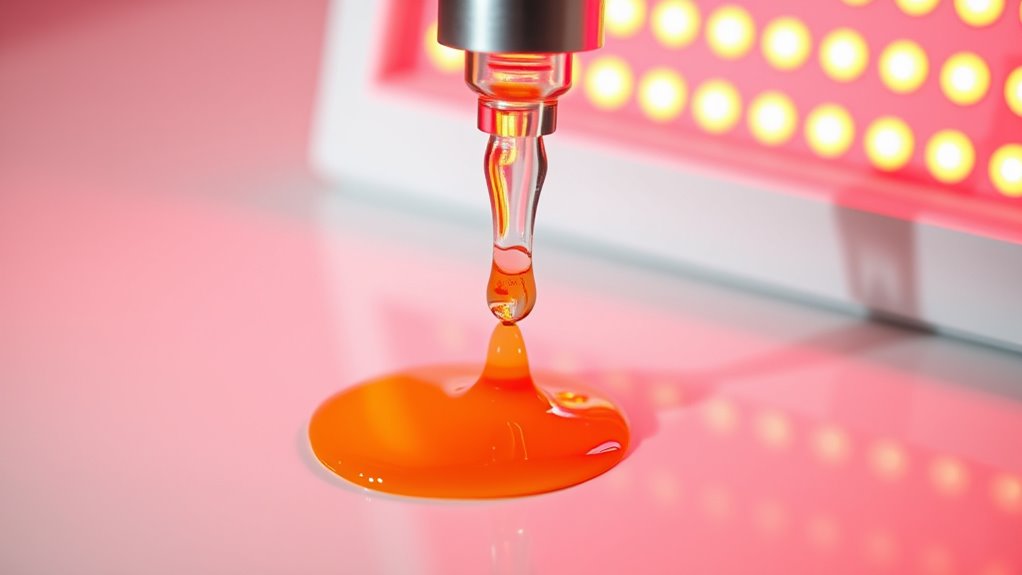 Red light therapy plays a surprising role in boosting your skin’s ability to absorb topical vitamin C. It does this by increasing blood flow and temporarily making your skin more permeable, allowing nutrients to penetrate deeper. This enhanced absorption can lead to better skin brightness, elasticity, and overall health. If you want to discover how red light further amplifies skincare benefits, keep exploring this innovative approach to skin health.