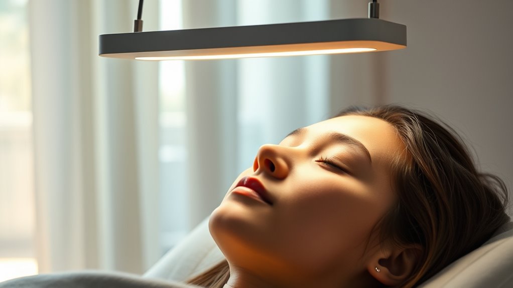 Prolonged light exposure can pose safety concerns, especially if you’re exposed to too much UV light, which can damage your skin and eyes. To stay safe, make certain your light therapy device filters out UV rays and maintains proper distance and duration. Always follow the manufacturer’s guidelines and consult an eye care professional if you experience discomfort or vision changes, so you can enjoy the benefits safely.