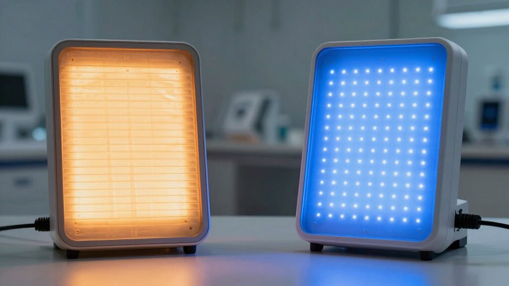 More heat isn’t always better when it comes to infrared heat therapy and photobiomodulation. Infrared relies on warmth to boost blood flow and relax muscles, but too much heat can cause discomfort or injury. Photobiomodulation uses specific light wavelengths to stimulate cells without needing intense heat. Finding the right balance guarantees safety and effectiveness, so exploring how each therapy works will help you make informed choices for your wellness goals.
