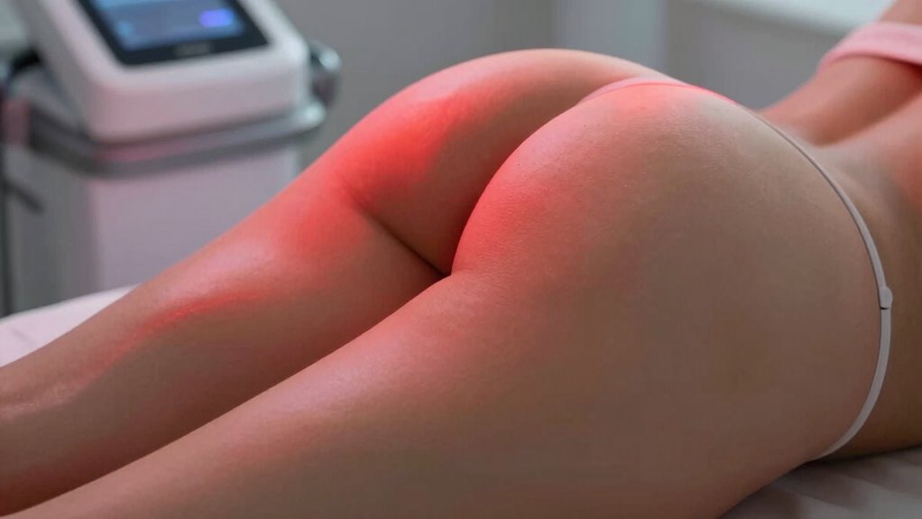 While cellulite and stretch mark treatments are generally safe when performed by trained professionals, it’s important to be aware of potential side effects like redness, swelling, or mild discomfort. These are typically temporary and resolve quickly. To minimize risks, carefully research and choose providers with proper qualifications and experience in red light therapy. Checking reviews, asking about their training, and verifying certifications can help ensure you’re in good hands. Avoid providers who offer treatments without proper credentials or who push unnecessary procedures. Remember, every person’s skin reacts differently, so understanding potential side effects allows you to make informed decisions. Prioritizing reputable providers helps you achieve safe, effective results while reducing the likelihood of adverse reactions. Additionally, understanding the role of safety standards can further guide your choices in selecting a qualified provider. Being aware of possible skin reactions and how they can be managed also contributes to a safer treatment experience. Incorporating knowledge of training requirements for providers can help you identify qualified professionals and ensure adherence to safety protocols. Moreover, considering the technology used during treatments can impact both safety and effectiveness. Further, being familiar with established safety protocols can enhance your confidence in the treatment process.