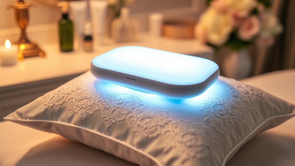 Did you know over 90% of LED skincare users report no side effects? Generally, LED treatments are very safe for brides. You might experience mild redness or warmth afterward, but these usually fade quickly. To minimize any risks, follow your skincare professional’s advice and avoid sun exposure immediately after treatments. If you notice persistent irritation, consult your specialist. Overall, LED is a gentle, effective way to enhance your bridal glow without significant side effects.
