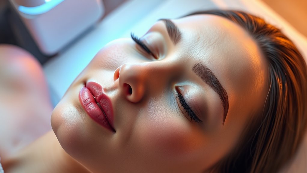 Combining LED therapy with facial massage can markedly boost your skin’s glow by stimulating blood flow, promoting lymphatic drainage, and enhancing product absorption. The LED light targets specific concerns like acne or aging, while gentle massage lifts and relaxes facial muscles. Together, they create a synergistic effect that leaves your skin feeling refreshed, radiant, and more youthful. Stay tuned to discover how to incorporate this powerful combo into your skincare routine for the best results.
