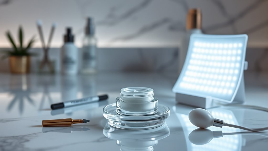 Mastering the dance between retinoids and LED treatments is like conducting a symphony—each instrument plays a essential role in harmony. When you alternate wisely, you’re painting a masterpiece of radiant skin, blending science and self-care with finesse. Think of it as tending a garden: with patience and the right rhythm, your skin blossoms brighter and healthier. Embrace this routine as your secret sauce, and watch your glow shine through like a lighthouse guiding the way.