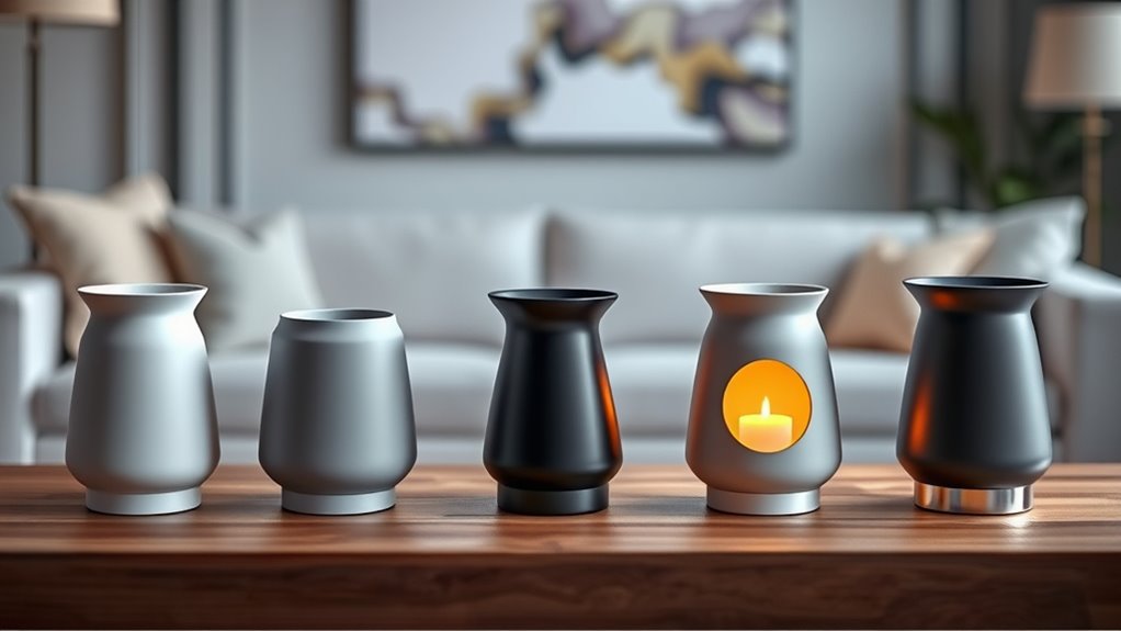 In 2025, I found that the top candle warmer lamps combine safety, style, and great scent diffusion. They feature timers, dimmers, and adjustable heights, making them both convenient and versatile. These lamps are perfect for creating cozy atmospheres without fire hazards. Whether you want elegant glass shades or modern designs, there’s something to match any decor. Keep going, and you’ll discover the best options for your space and safety needs.