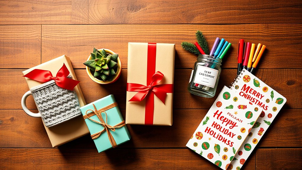 • Practical office accessories like festive stationery or personalized drinkware boost productivity and add holiday cheer within budget.