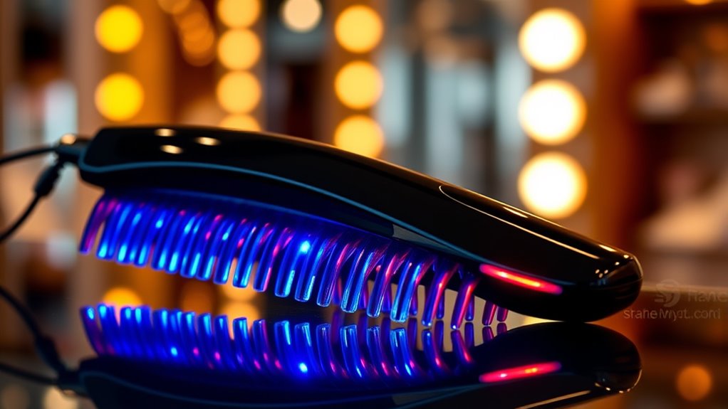 If you’re looking for the best LED combs to help thinning hair grow and shine, I’ve got you covered. I’ve found top options like laser therapy combs, scalp massagers, and styling brushes that are safe, effective, and easy to use at home. These tools boost scalp health, stimulate hair growth, and add shine with gentle, non-invasive therapy. Keep going to discover detailed reviews and features for each device to find the perfect fit.