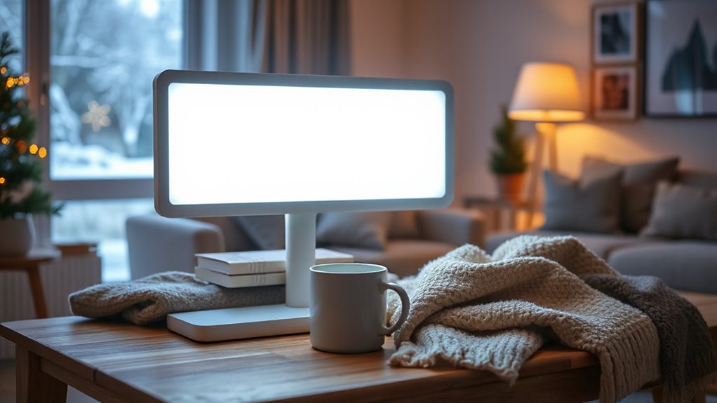 Color temperature options in light therapy lamps play a crucial role in tailoring your treatment to your needs and preferences. These options usually range from warm (around 2700K) to cool (up to 6500K), impacting both mood and visual comfort. Cooler temperatures, like 5000K to 6500K, mimic natural daylight and are great for boosting alertness and energy, making them ideal for morning use. Warmer temperatures, from 2700K to 4000K, create a relaxing atmosphere, perfect for evening routines or unwinding. Many lamps offer adjustable settings, allowing you to personalize your experience based on the time of day or mood. Choosing the right color temperature can enhance mood improvement and help regulate your circadian rhythm during seasonal depression treatment.