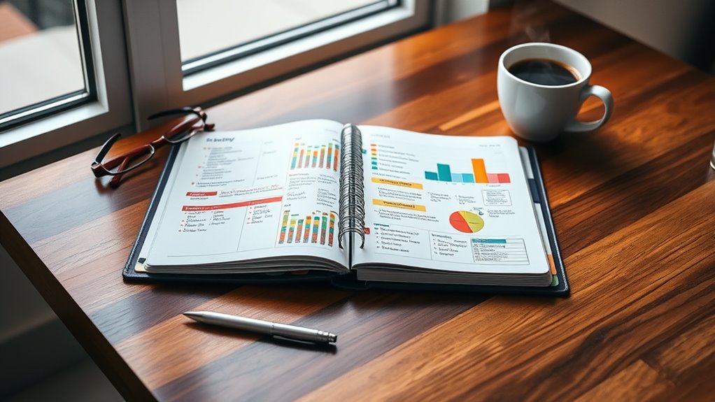 When choosing a 2026 planner, I look for features like ample space for daily notes, customizable layouts, and a sturdy cover that lasts all year. I also value built-in calendars, goal-setting sections, and reminder prompts to stay on track. An eco-friendly design and portability matter too, so I can carry it easily and stay organized on the go. These features help me reduce stress and stay productive.