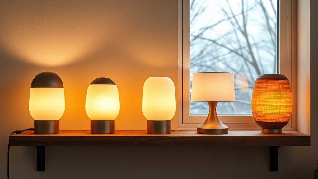 If you’re looking to lift your mood during winter, I recommend trying the top five sad lamps I’ve found. They feature high lux levels like 10,000, adjustable brightness, and safety certifications to give you peace of mind. Many are portable, with sleek designs you can use at home or work. Plus, they offer customizable settings to suit your needs. Keep going, and you’ll discover more about each one and how they can brighten your days.
